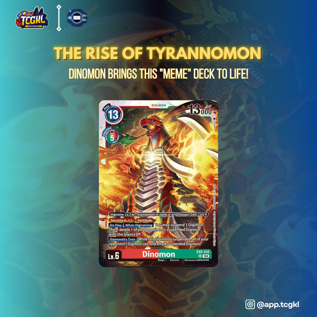 Digimon TCG1 Min Read hazwanon28/01/2025 Dinomon Brings This “Meme” Deck to Life! For years, Tyrannomon was seen as a “meme” deck—too slow, with poor payoff and no real competitive edge. But that’s all changed… Discover More