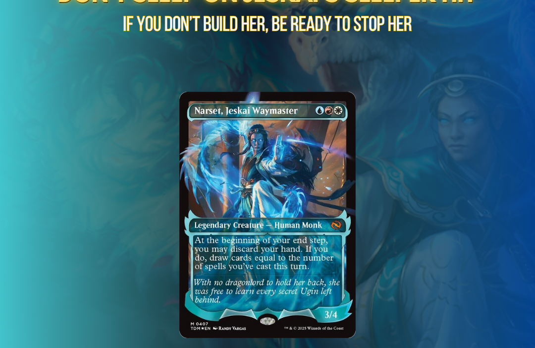 If you’re not planning to build around her — you might want to keep removal ready. Because once Narset gets going, it’s hard to stop her momentum.
