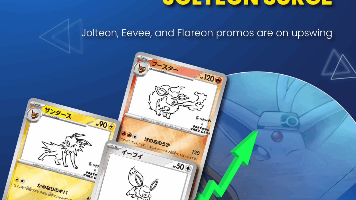 And Jolteon’s not the only one running up the ladder. Eevee 062/SV-P has climbed to just under $45, while Flareon 065/SV-P is holding strong near $40. The Yu Nagaba Eeveelutions might just be the next collector’s crown jewels.
