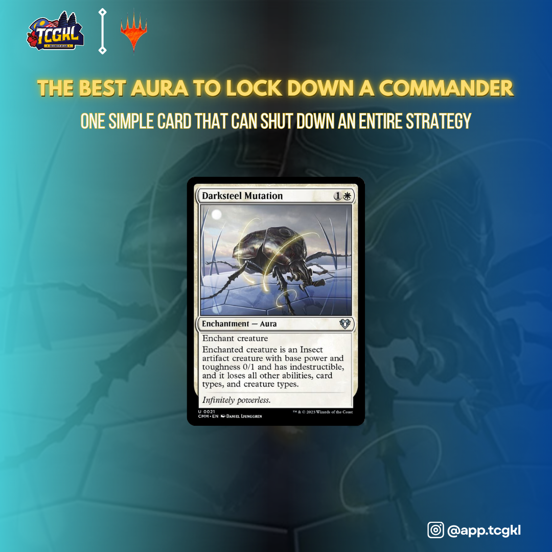 Looking for a way to neutralize a powerful Commander without sending it back to the Command Zone? Darksteel Mutation is your answer.
