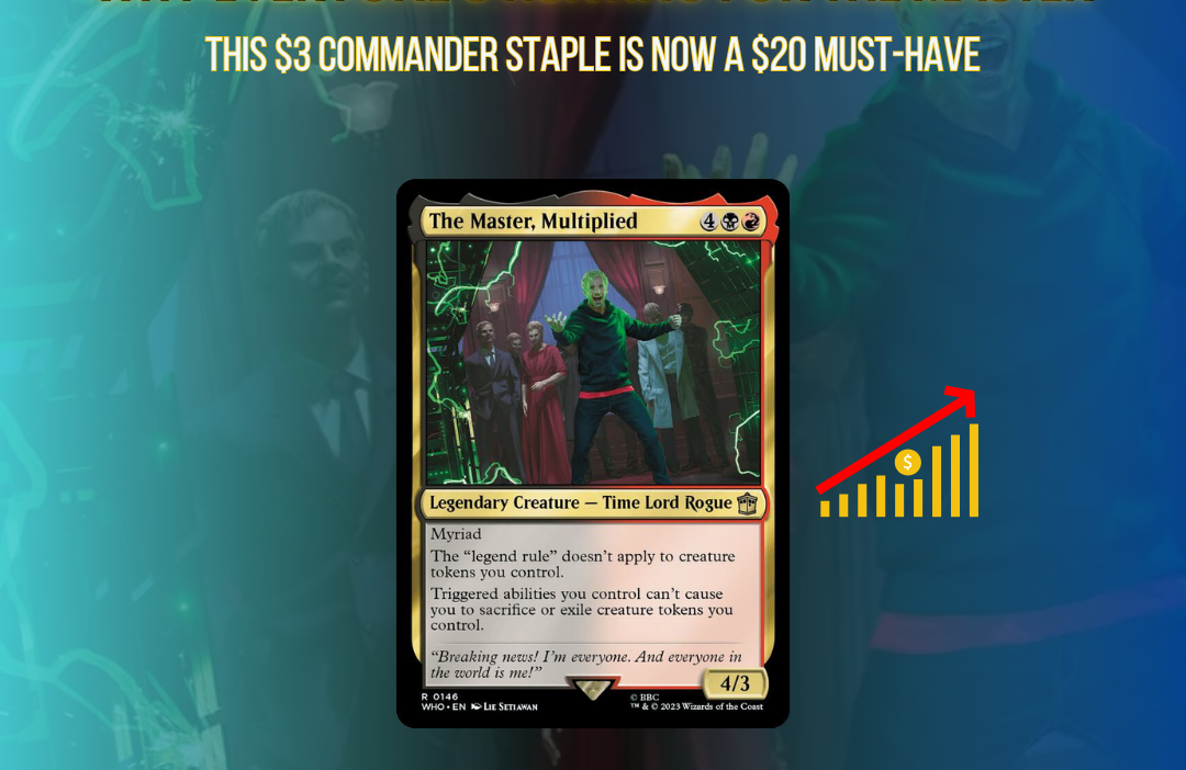 One of the biggest shake-ups this week? The Master, Multiplied from Universes Beyond: Doctor Who just got completely bought out, skyrocketing from a modest $3 to over $20 – all thanks to the reveal of Secret Lair x Marvel’s Deadpool.